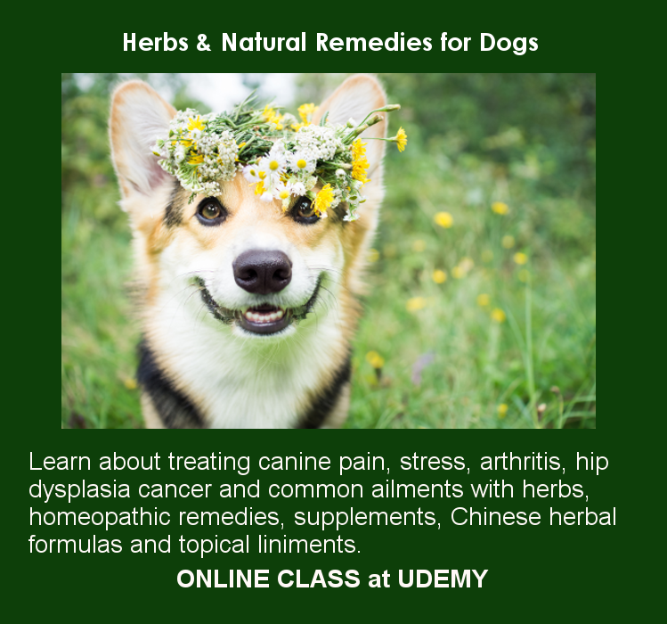 Herbs and Natural Remedies for Dogs: Holistic solutions for pain, stress and common K9 ailments - Learn about treating canine pain, stress, arthritis, hip dysplasia, cancer and common ailments with herbs, homeopathic remedies, supplements, Chinese herbal formulas and topical liniments.